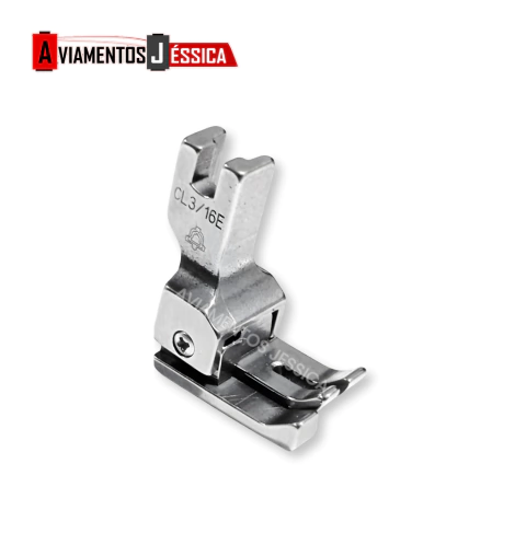 O Calcador CL3/16E Pesponto Esquerdo é ideal para máquinas industriais de ponto reto, oferecendo costuras precisas e uniformes com margem de 3/16 de polegada. Seu guia lateral à esquerda facilita o alinhamento do tecido, garantindo acabamentos profissionais e prespontos de alta qualidade.